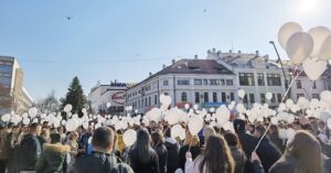 Od 19-godišnjeg mladića oprostili su se prijatelji i poznanici koji su sa suzama u očima u vazduh pustili bele balone.