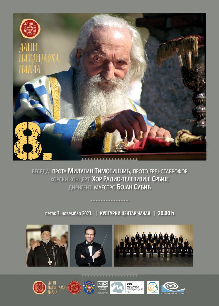ČAČAK – U petak, 3. novembra, u velikoj sali Doma kulture održaće se Svečana akademija Dani patrijarja Pavla.