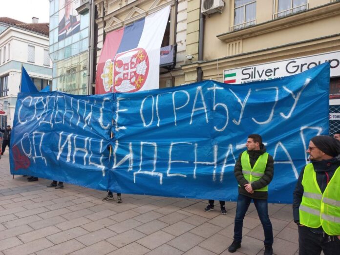 U saopštenju gradske organizacije SNS posebno se ističe detalj kada su studenti postavili paravan ispred prostorija SNS na Gradskom šetalištu na kojem je pisalo “Studenti se ograđuju od incidenata“.