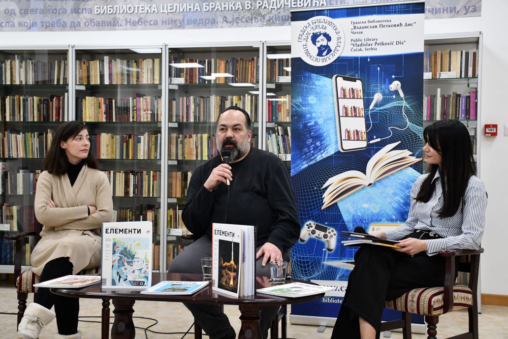 U prvom delu večeri predstavljen je naučno–popularni časopis “Elementi“, koji već deset godina donosi čitaocima aktuelna naučna dostignuća iz zemlje i sveta. O radu publikacije govorio je glavni i odgovorni urednik Ivan Umeljić, dok je o temama vezanim za veštačke agente i čet-botove izlagala dr Vanja Subotić sa Instituta za filozofiju u Beogradu. Program je vodila bibliotekarka Tanja Vuković.