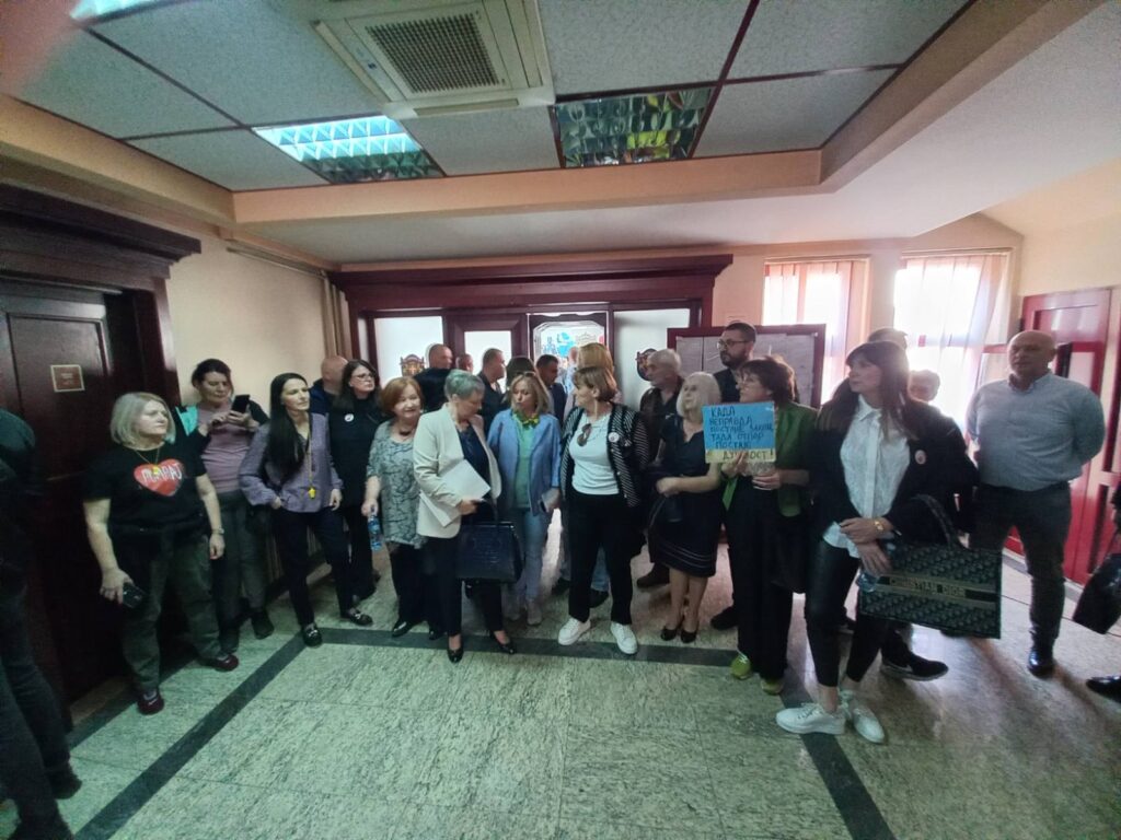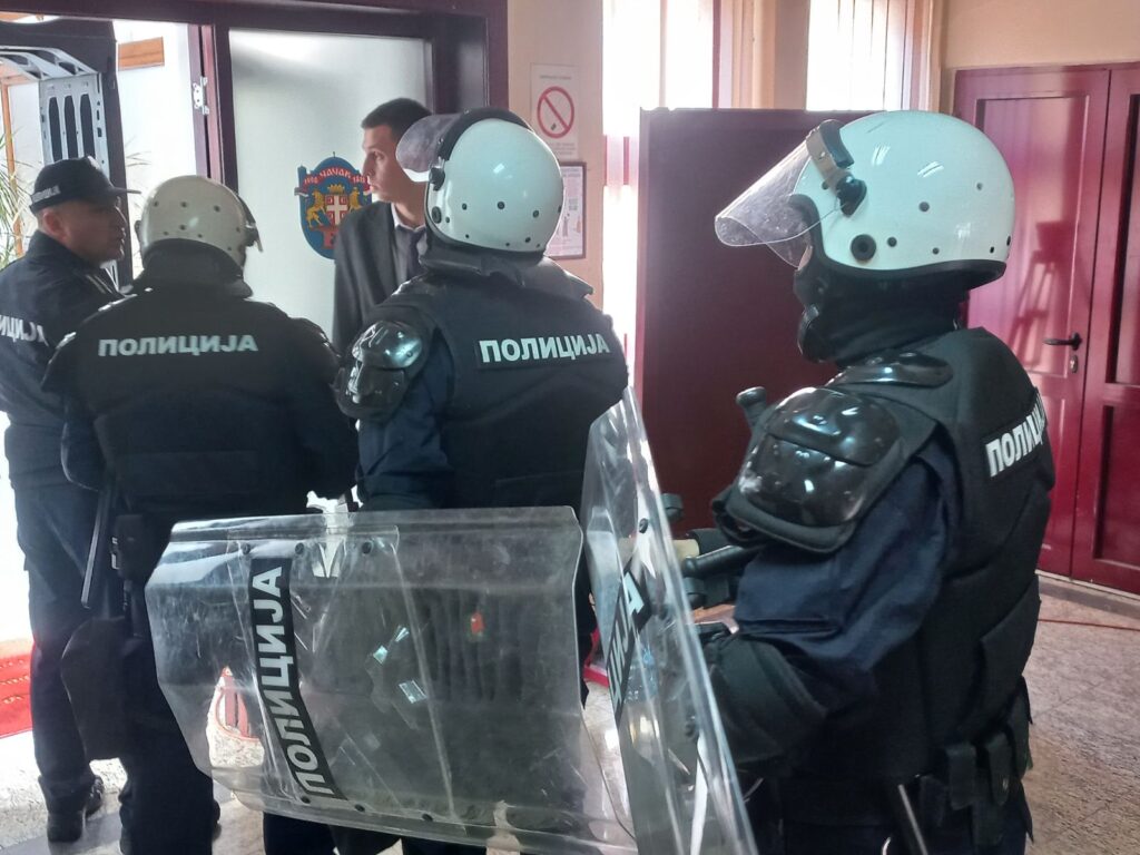Na poziv odbornika opozicije građani su pozvani da uđu u skupštinsku zgradu, ali im obezbeđenje to nije dozvolilo.