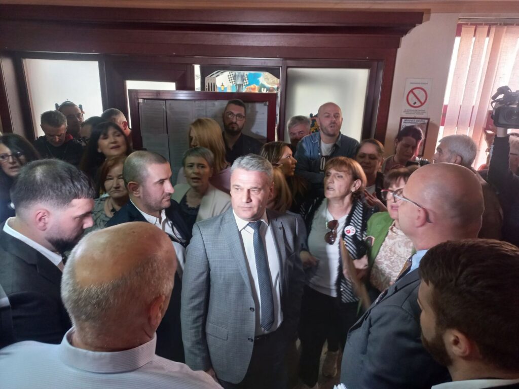 U hol su došli i gradonačelnik Milun Todorović sa pomoćnicima pokušavajući da prođu u samu salu, ali im to nije dozvoljeno.
