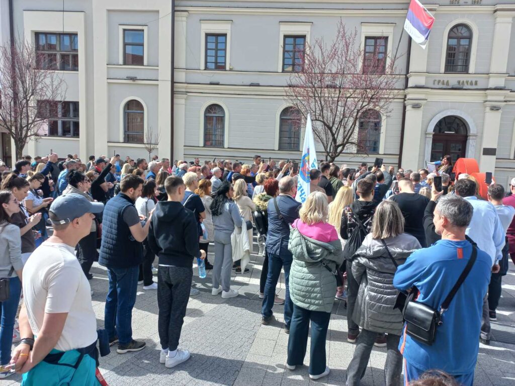 ČAČAK – Nekoliko stotina građana okupilo se danas ispred zgrade Skupštine grada u kojoj je na zahtev opozicije zakazana sednica lokalnog parlamenta.