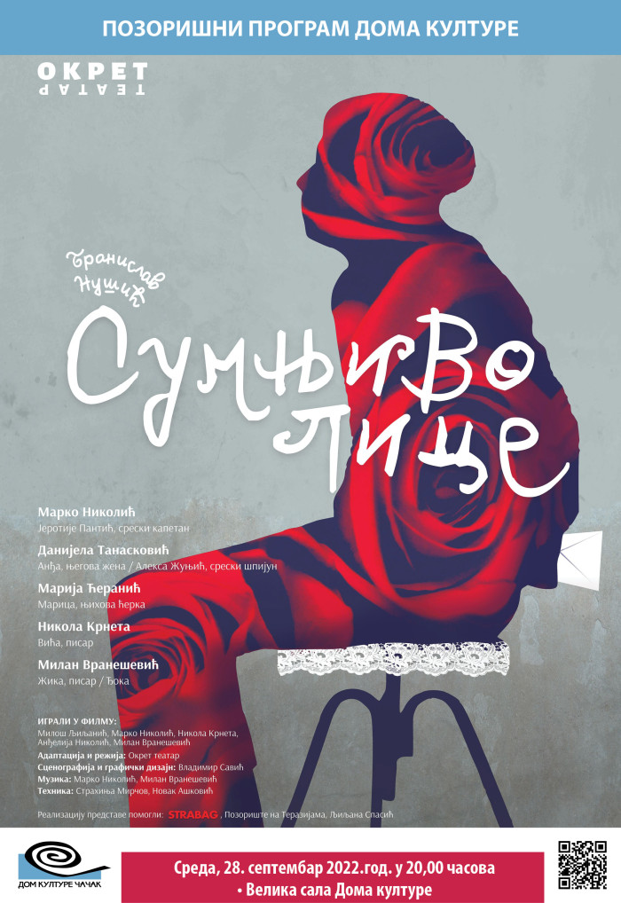 ČAČAK – Na velikoj sceni Doma kulture u sredu, 28. septembra, biće izvedena pozorišna predstava “Sumnjivo lice“, u produkciji Okret teatra iz Beograda.
