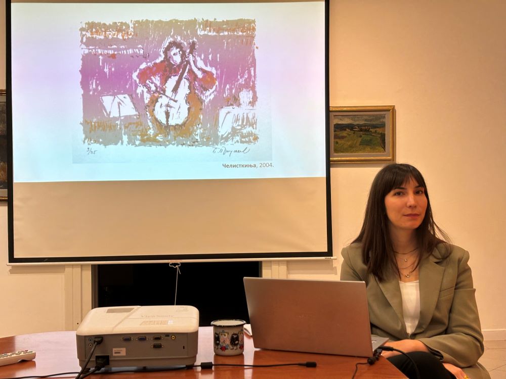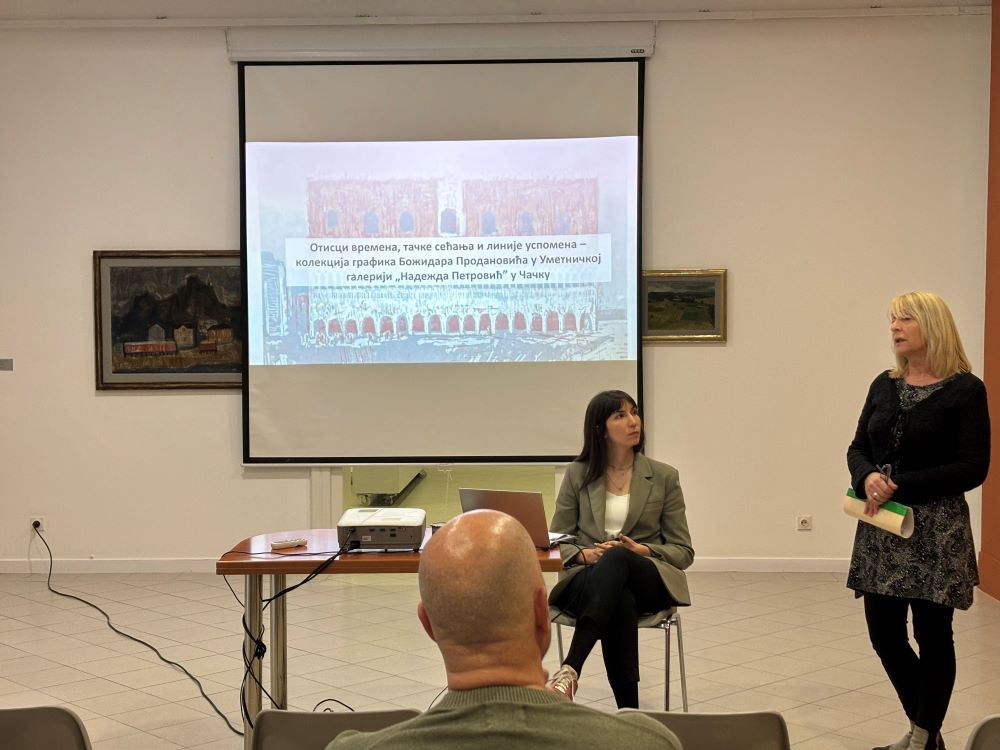 ČAČAK – Predavanje pod nazivom ,,Otisci vremena, tačke sećanja i linije uspomena – kolekcija grafika Božidara Prodanovića u Umetničkoj galeriji „Nadežda Petrovićˮ u Čačku“ organizovano je u utorak u Galeriji, u okviru izložbe ,,Božidar Prodanović: zagonetnost realnih prizora“.