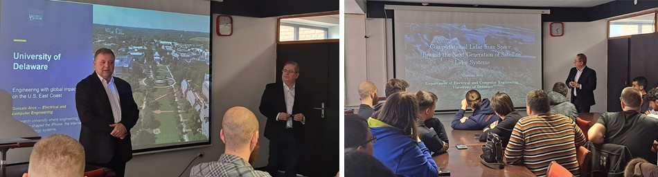 Tokom posete, profesor Arsi održao je stručno predavanje za studente na temu „Računarsko satelitsko LiDAR (Light Detection and Ranging) snimanje“, u kojem je predstavio najnovija dostignuća u oblasti svemirskih LiDAR sistema. Ovi sistemi imaju ključnu ulogu u posmatranju urbanih, šumskih i ledenih ekosistema Zemlje, ali postojeći satelitski LiDAR sistemi često imaju ograničenja zbog niske prostorne rezolucije i male gustine fotona.