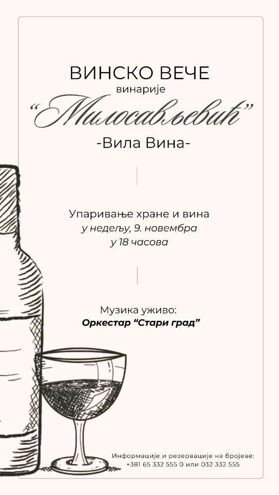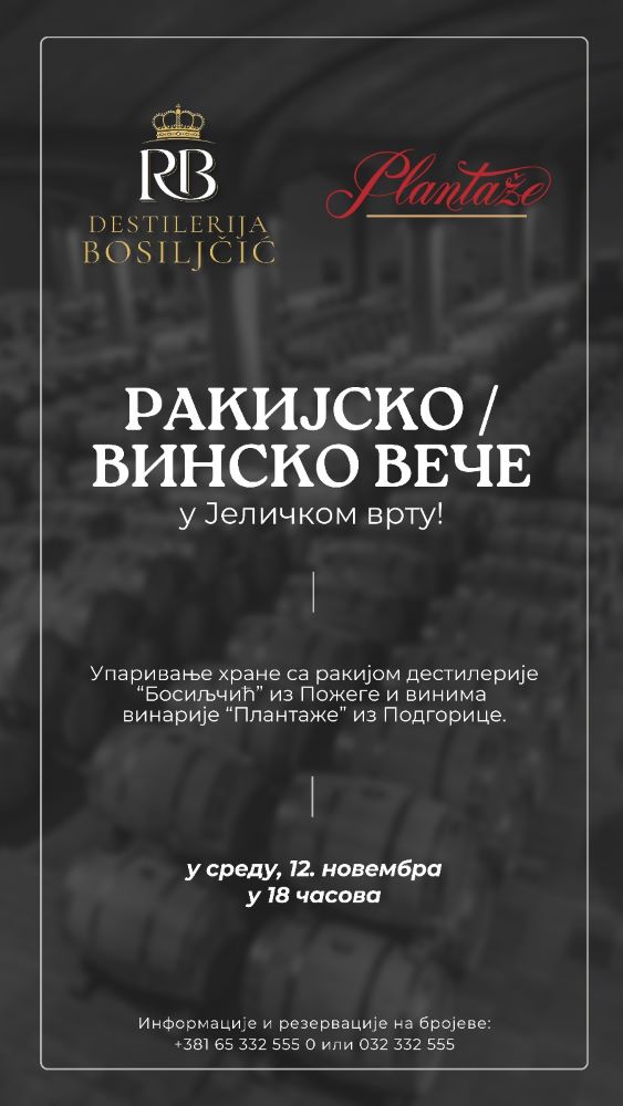 ČAČAK – Restoran domaće kuhinje „Jelički vrt” u Gornjoj Atenici u novembru nastavlja sa organizovanjem muzike uživo svake srede, četvrtka, petka i subote od 19 časova, a planiramo i dva specijalna programa: u nedelju, 9. novembra Vinsko veče Vinarije Milosavljević („Vila Vina”) iz Trstenika i u sredu, 12. novembra Rakijsko-vinsko veče (Destilerija „Bosiljčić” iz Požege i Vinarija „Plantaže” iz Podgorice).