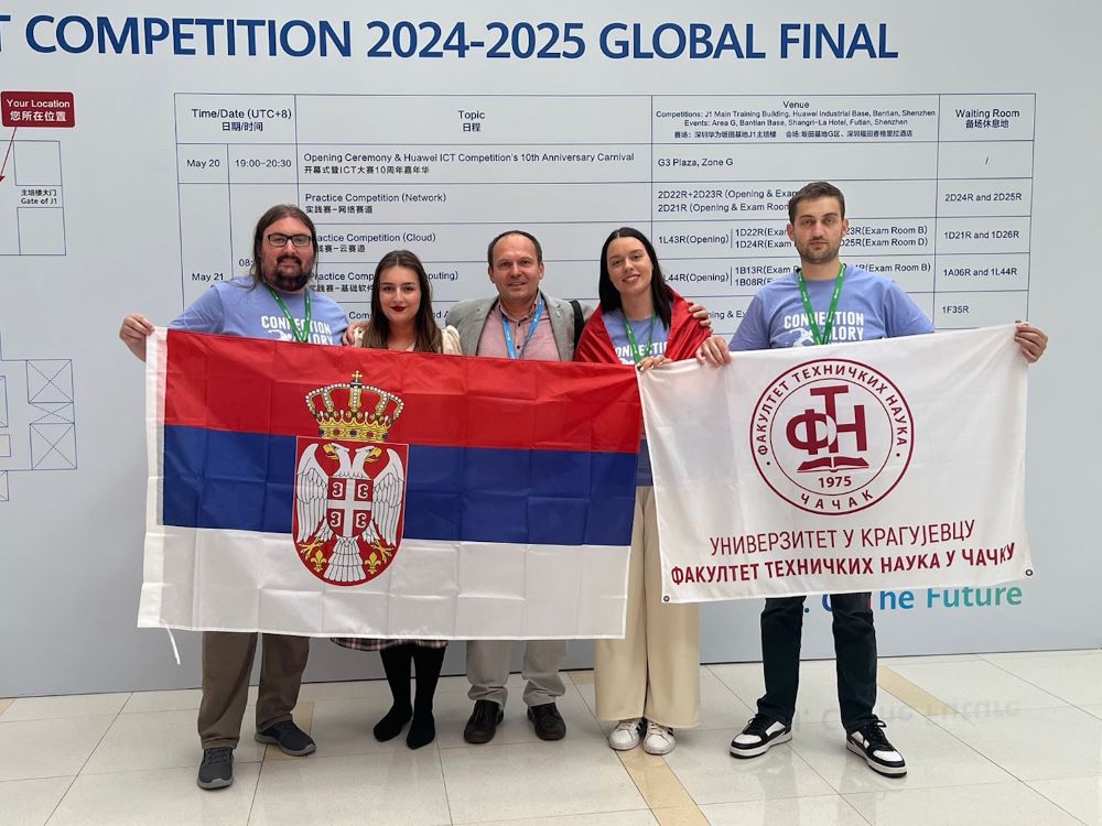 ČAČAK – Studenti Fakulteta tehničkih nauka iz Čačka, Univerziteta iz Kragujevca, osvojili su jednu od glavnih nagrada na ovogodišnjem Huawei ICT takmičenju! Srbija je trijumfovala u izuzetno uzbudljivom dvodnevnom finalu, u kojem je učestvovalo 15 timova iz celog sveta.