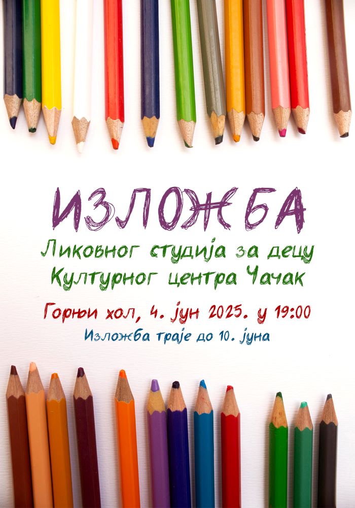ČAČAK – U Gornjem holu Kulturnog centra u sredu, 4. juna od 19 sati, biće otvorena tradicionalna izložba Likovnog studija za decu Kulturnog centra Čačak.
