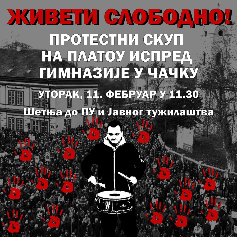 ČAČAK – U Čačku će se u utorak, 11. februara, održati protest pod nazivom “Živeti slobodno“, u znak podrške profesoru čačanske Gimnazije i sindikalnom aktivisti Đorđu Matijeviću, čiju su porodicu pre izvesnog vremena napali huligani, čiji identitet policija još uvek nije otkrila.