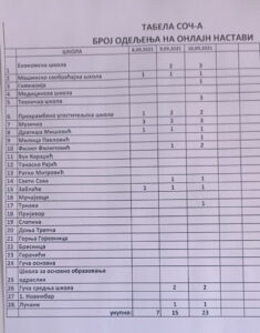 Evo kompletnog grafikona sa brojem odeljenja na onlajn nastavi u svakoj školi:
